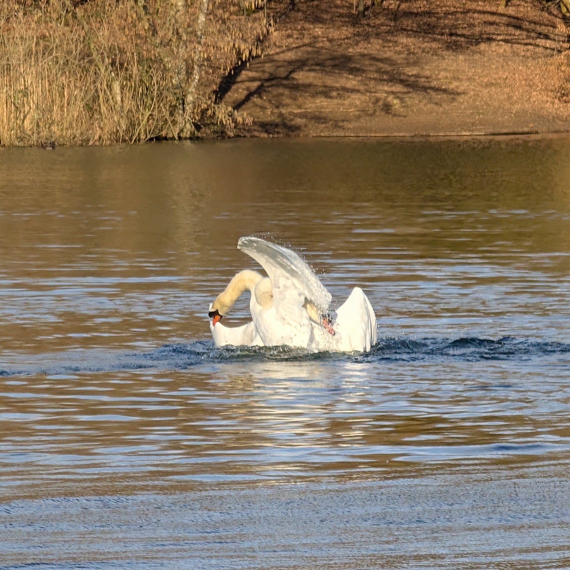 And when it comes to swans, though we usually associate them with grace and elegance, when it comes to mating season (ie now!) they're some of the most violently territorial birds I've seen! A couple of years ago at Pomona, I genuinely thought one male was going to kill another, weaker one that happened to be encroaching on his mating territory. This month, in a local lake, I watched another brutal encounter. I had forgotten how much aggressive swans sound just like I imagine dinosaurs did. It's pretty terrifying! Check out the photo of these two apparently trying to consume one another mid-fight. Just imagine if they had teeth - though I imagine those serrated beak-edges are still fairly damaging on occasion.