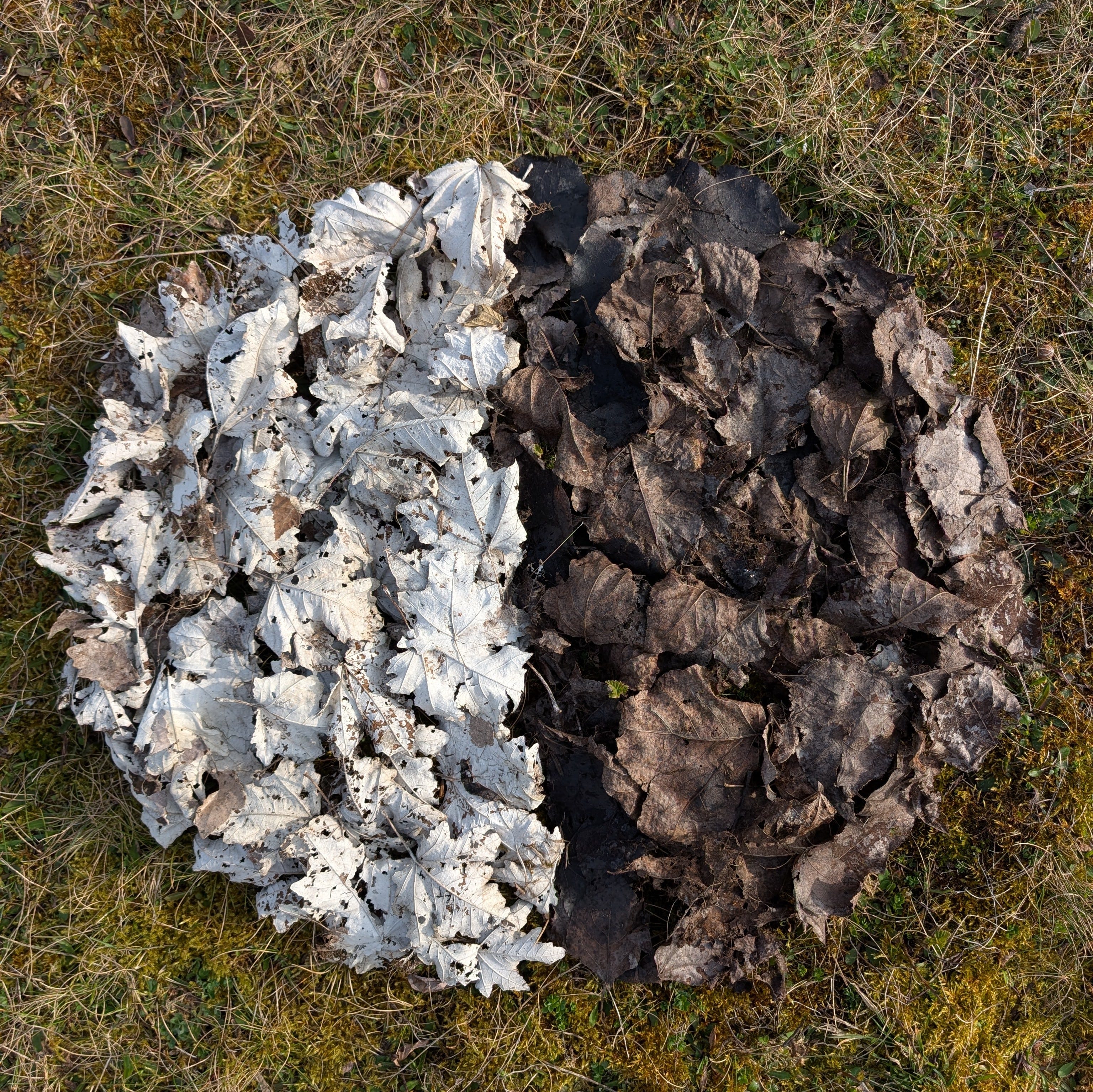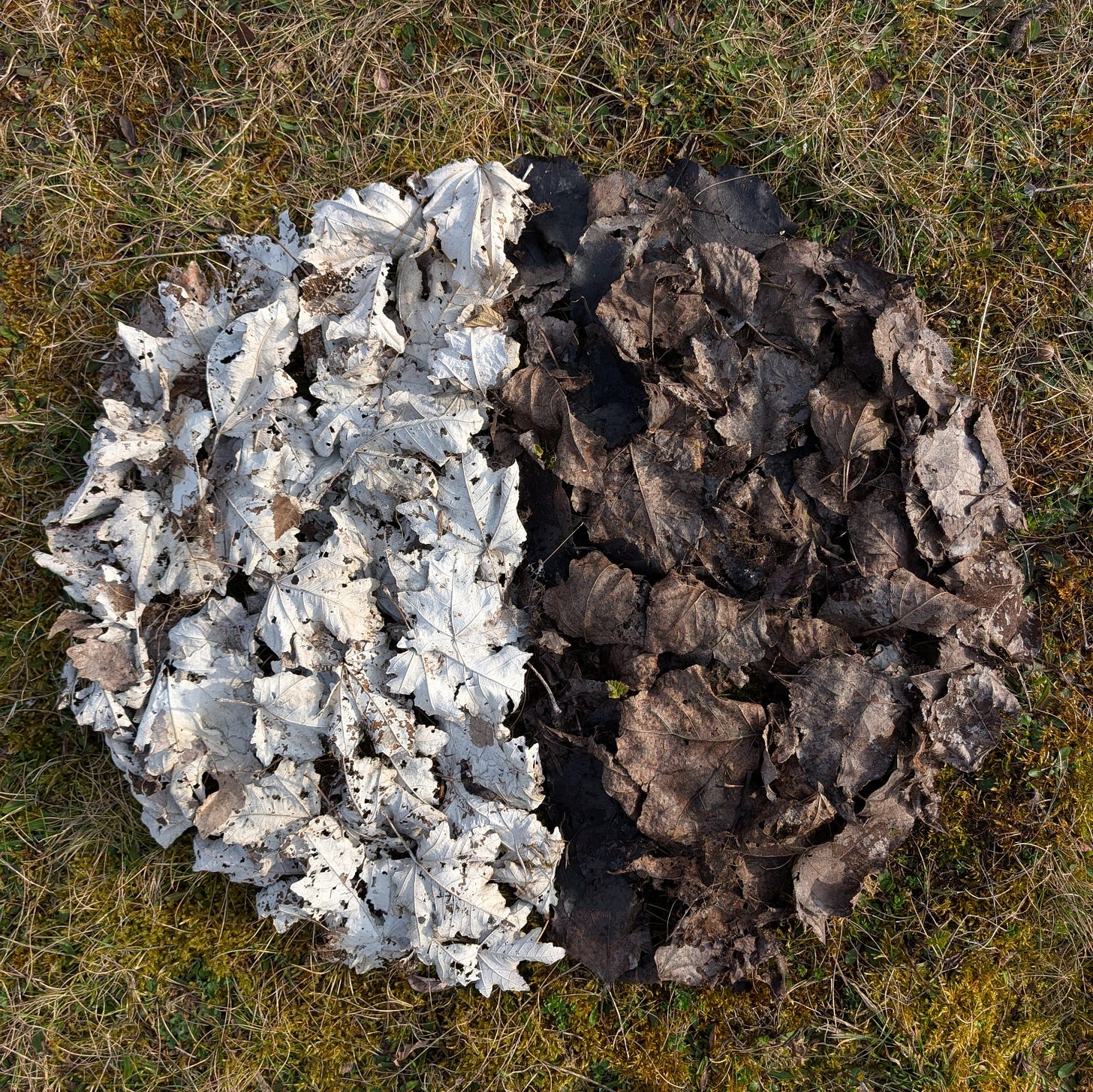 The leaves were all gathered from Pomona on the day: those on the left are white poplar, those on the right are black poplar. I pass the white poplar saplings regularly, but there's just one black poplar present, which I only came across and identified within the last year.