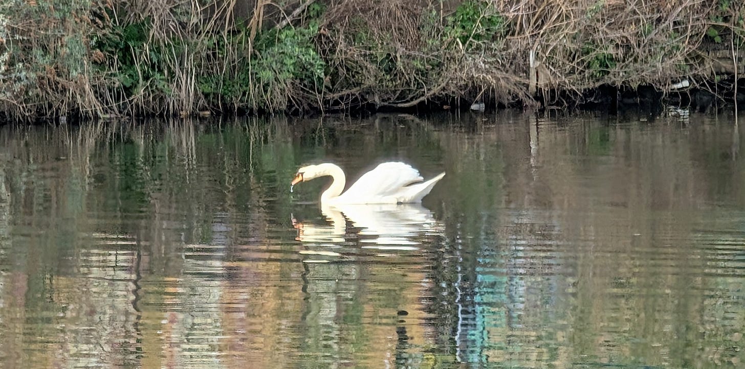 After the creative part of the ritual, as I wandered around Pomona on Friday, I was pleased to encounter just a single swan on the river:
