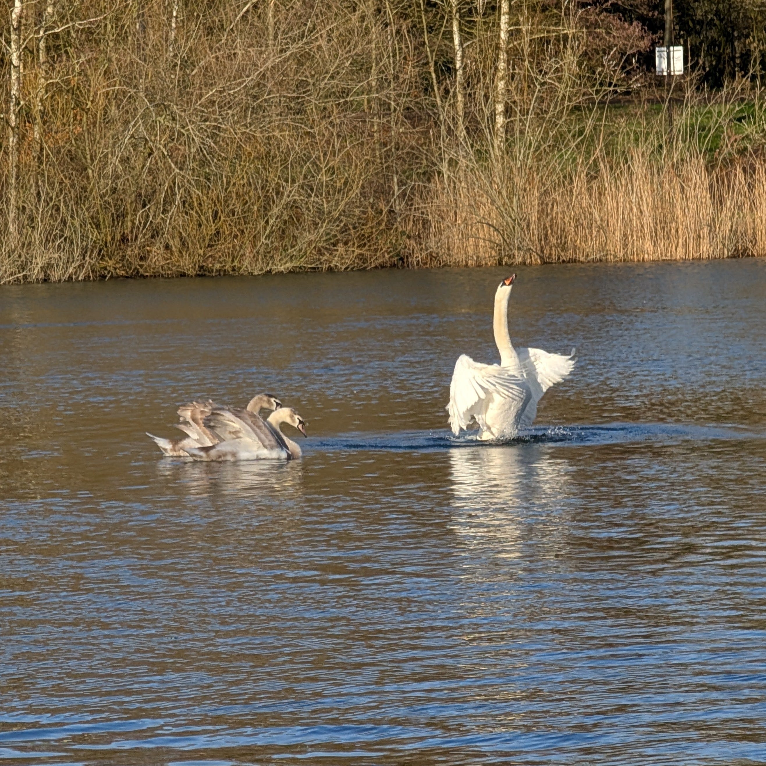 I spotted them together in Magic Pool at Pomona, and other than the ever-present geese and gulls, they were the only two birds I spotted that day: a both/and omen of black cormorant and white swan. They were accompanied by an unseen song thrush, who was providing a constant backing track that, on that cold, quiet day, sounded both cheerful and mournful in equal amounts.